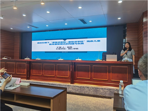 此次优秀教学成果交流展示研讨会分为三个分会场进行,我院陆博士在第二分会场就其教学成果《高校引领下“课堂进医院+康复进学校”残疾儿童教育康复模式的构建与实践》进行汇报交流。陆博士分别从“问题的提出、解决问题的办法、成果的主要内容、成果实施前后的成效比较和成果培育建设方案”这五个部分进行了汇报。汇报完毕后,贵州师范大学的蒋馨岚院长、贵州师范学院杨智处长以及贵阳市第二中学段丽英校长分别作了点评并提出完善建议。