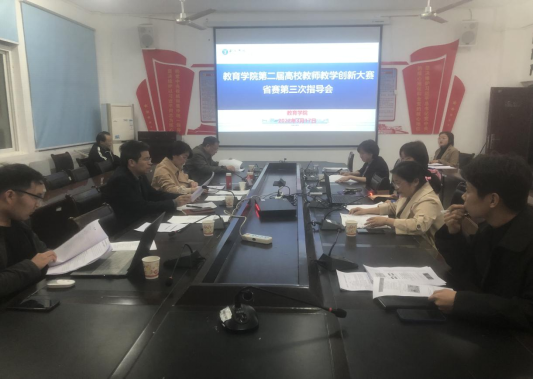 根据《beat365英国官方网站第二届高校教师教学创新大赛指导安排》要求,为提高教育学院省级教学比赛参赛选手的教学比赛水平,近日,教育学院召开了第二届高校教师教学创新大赛省赛第三次指导会。beat365英国官方网站教务处龚静处长、教育学院梁成艾院长、田劲松副院长、董世华博士、白强博士、宋健博士 、刘方林博士等参与论证,对参赛选手的申报材料进行指导。会议由教育学院教务科负责人陆艳博士主持。