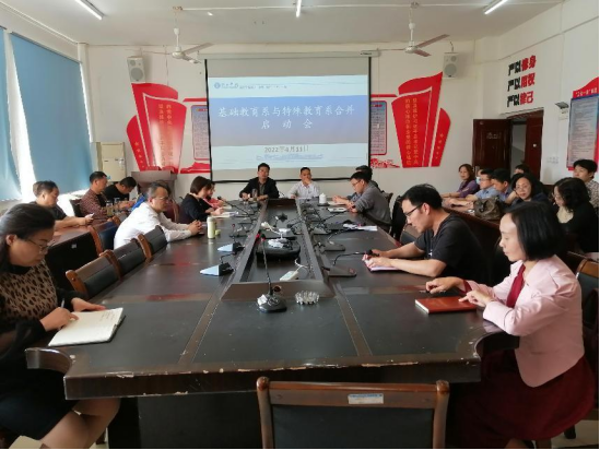 4月11日下午,我院在院三楼会议室召开了基础教育系与特殊教育系合并启动会,会议由院长梁成艾主持,院领导班子成员及基础教育系、特殊教育系全体教师参加会议。