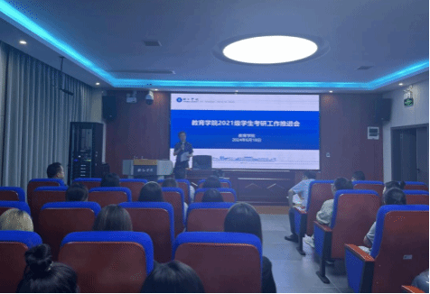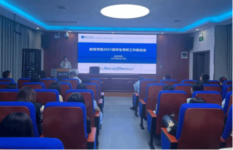 大会的第一个议程为考研动员。会议伊始,由教务科科长陆艳介绍此次会议目的并介绍会议议程。接着,王华刚副院长对2021年考研工作进行动员宣讲。随后,陆艳解读《教育学院考研工作高质量发展三年行动方案(试行)》。然后分别由2018、2019、2020级考研成功学生代表作考研经验分享。最后由梁成艾院长对考研学子提出具体的要求。