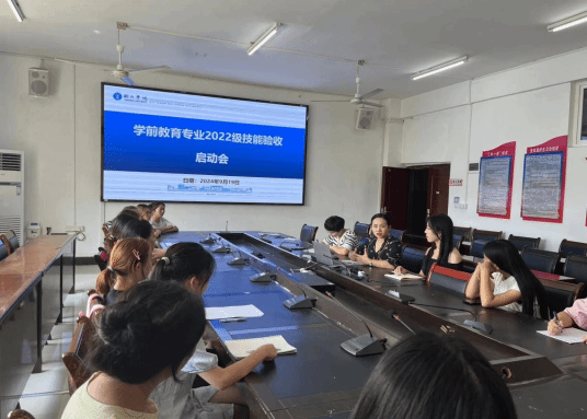 为了加深学生对专业技能验收项目内容的了解及提升学生对专业技能验收工作的重视程度,9月19日,我院学前教育专业在教育学院三楼会议室召开了2022级学前教育专业技能验收启动会。学前教育系主任杨瑛,实训教研室主任杨松慧,2022级学前教育专业3个班的班长、学习委员、文艺文员、宣传委员及2023级学前教育专业2个班的文艺文员参加了此次启动会。