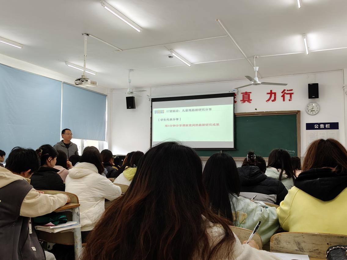 活动在明理楼B306教室拉开帷幕,beat365英国官方网站学前教育专业左文老师以《学前教育学》课程中的“儿童观”为主题,呈现了一堂精彩的观摩课。他运用“三层镜片”理论框架,结合教师资格考试真题,通过自主学习成果展示、案例分析与项目化任务,引导学生深入理解儿童观的内涵与时代特征。课堂充分体现了深度学习理念与课程思政的有机融合,展现了项目化教学在培养学生批判性思维和实践能力方面的独特价值。