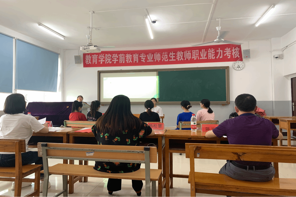 为提升学前教育专业学生职业能力,提高专业人才培养质量,推进新时代卓越教师培养,对标师范生教师职业能力国家标准,落实《beat365英国官方网站师范生教师职业能力考核方案》,近日,我院学前教育专业开展了教学综合能力考核工作。每个考核组安排15位学生,考核环节包括说课和模拟教学,内容包含健康、语言、社会、科学和艺术五大领域,评委由学前教育专业全体教师及8位幼儿园一线教师组成。
