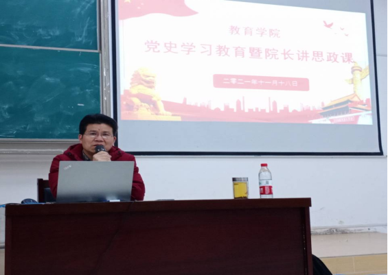 为学习贯彻习近平总书记在党史学习教育动员大会上的重要讲话精神,进一步深化我院学生对开展党史学习教育意义的认识,2021年11月18日晚,教育学院于博思楼103教室举办了题为“百年来中国共产党组织领导农民教育的时代变迁与发展愿景”的学术讲座,主讲人为教育学院院长梁成艾教授,2020级小学教育专业全体学生参加本次讲座。
