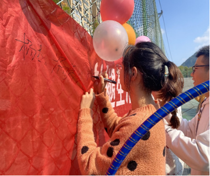 同学们在横幅上签字