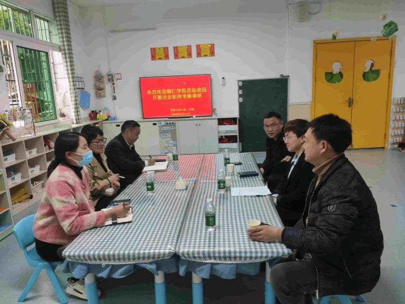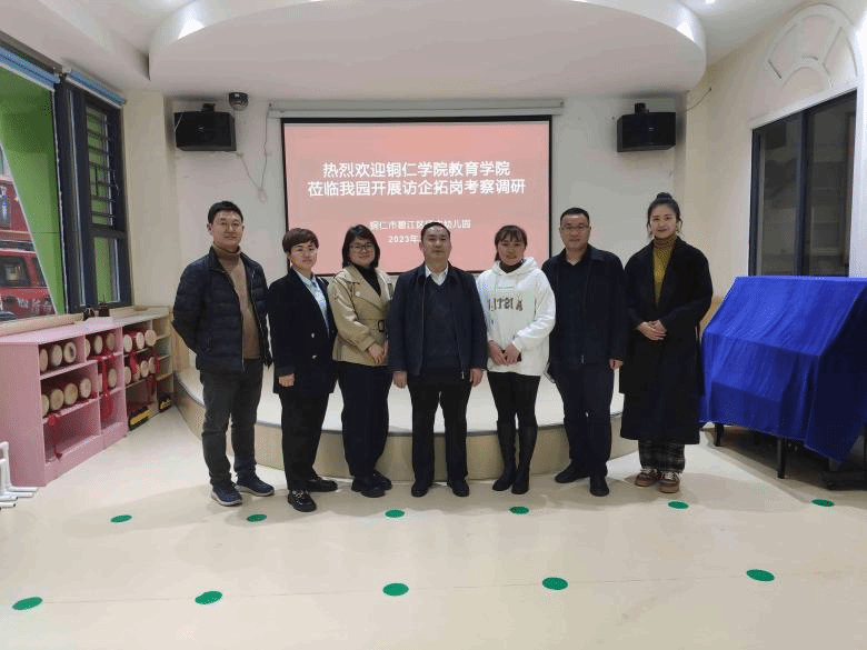 为拓宽就业渠道,帮助毕业生寻求更多就业岗位,2023年3月31日下午,教育学院党委书记崔德虎、副书记吴承品,学前教育系主任杨瑛,基础教育系党支部纪检委员冯颖和辅导员钱丽红等一行5人深入铜仁市第六幼教集团开展访企拓岗活动。