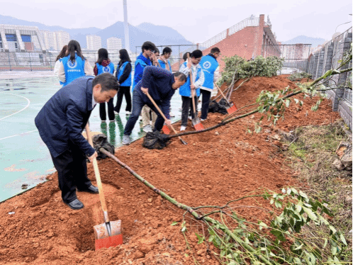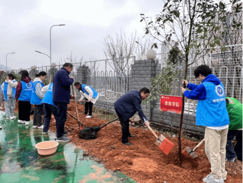 在本次活动中,我院领导与志愿者们一同体验了植树劳动的过程,以实际行动学习雷锋精神,既加强了劳动教育,又美化了绿色校园。