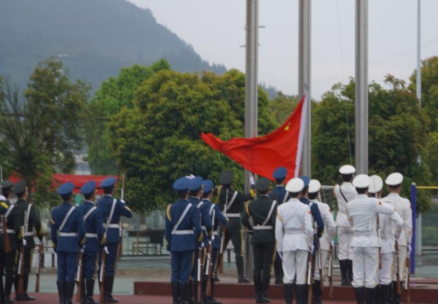 早上七点整,升旗仪式正式开始。国旗护卫队昂首挺胸,迈着铿锵有力的步伐走向升旗台,伴随着激昂的旋律,全体师生庄严肃立,齐唱国歌,鲜艳的五星红旗迎风冉冉升起。