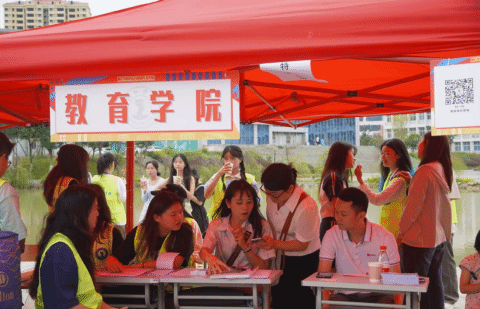 近日,beat365英国官方网站2023级新生入学报到如期进行。教育学院各“迎新”工作组早早守候在学校南门和明德湖广场,时刻准备为新来的同学提供热情周到的服务。院党委书记崔德虎、副书记吴承品、学生科负责人钱丽红、团总支负责人全丹妮及全体新生班主任也都亲临现场,指导工作人员和志愿者开展工作。