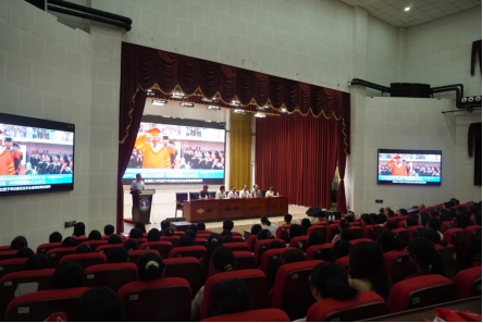 会上,白强博士和王文杰同学分别作为优秀教师代表和学生代表发言。白博士鼓励2023级的新同学们一定要做有理想信念的人,要在自我超越中不断前行,不虚度光阴、不浪费自己的美好青春。王文杰同学则表示:要尽快适应大学生活,树立目标制定计划,通过四年学习能丰富自己的内涵与见识,将来成为一名和在座老师一样优秀的人民教师。师生代表的精彩发言赢得现场阵阵掌声。