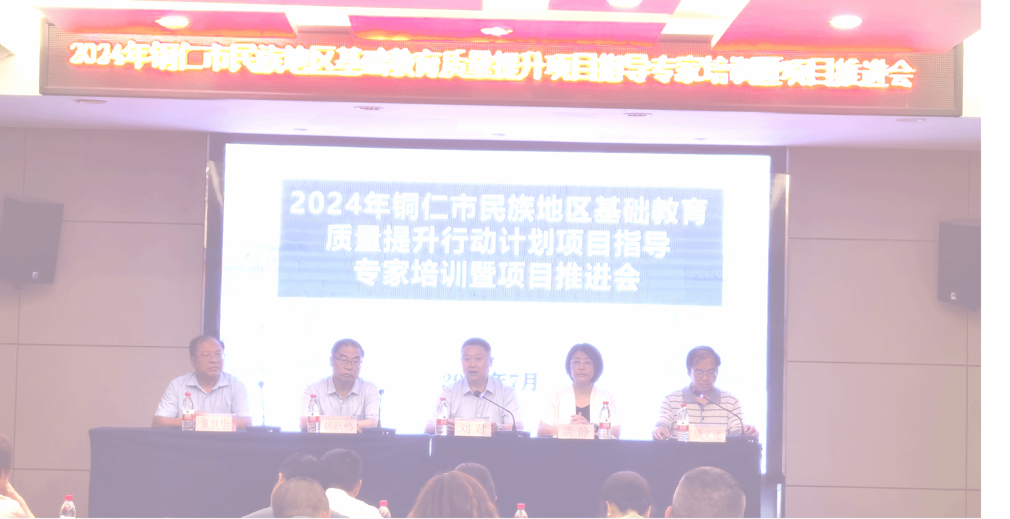 近日,铜仁市民族地区基础教育质量提升项目专家培训暨项目推进会在铜仁锦江宾馆会议中心举行。beat365英国官方网站副校长龚静、贵州教育科学院正高级教师杨跃鸣、铜仁市教育局招生考试院院长刘君、beat365英国官方网站项目负责人董世华及70余名项目指导专家和区县教育局项目负责人出席了开班仪式,仪式由铜仁市教育局教科所所长唐文建主持。