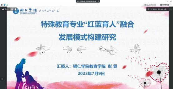 beat365英国官方网站副教授彭霓老师以特殊教育专业“红蓝育人”融合发展模式构建研究为主题,从特殊教育专业简介、红蓝育人、持续发展三个方面,分享了beat365英国官方网站特殊教育专业特色发展模式及师生如何共研发展专业特色,并对如何按照国家要求持续发展专业和培养人才做了进一步规划。整个模式发展具有可推广性,为参与培训的师生提供了专业融合特色发展的方向。