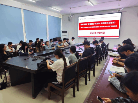 为深入推进“一站式”学生社区建设,落实“以学生为中心”办学理念,畅通师生沟通渠道,切实解决学生急难愁盼问题,2026年4月10日,教育学院开展“师者暖心伴成长·书记院长话家常”面对面系列交流活动。学院党委书记崔德虎、党委副书记陆艳与本科一年级全体寝室长围坐话家常、听心声、解难题。该活动由教育学院学生党支部委员、学生科(团总支)副科长(副书记)全丹妮主持。