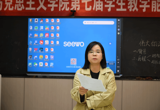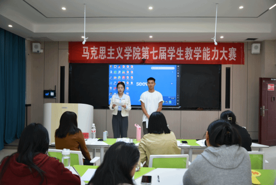 为了进一步提升我院学生的教学技能,培养具有创新精神和实践能力的高素质师范类人才。11月11日下午,我院在依仁楼A205教室举办马克思主义学院第七届学生教学技能大赛,李芬、张卫红、王静三位老师担任评委,2023级思想政治教育班学生侯娟和张俊阳担任主持。