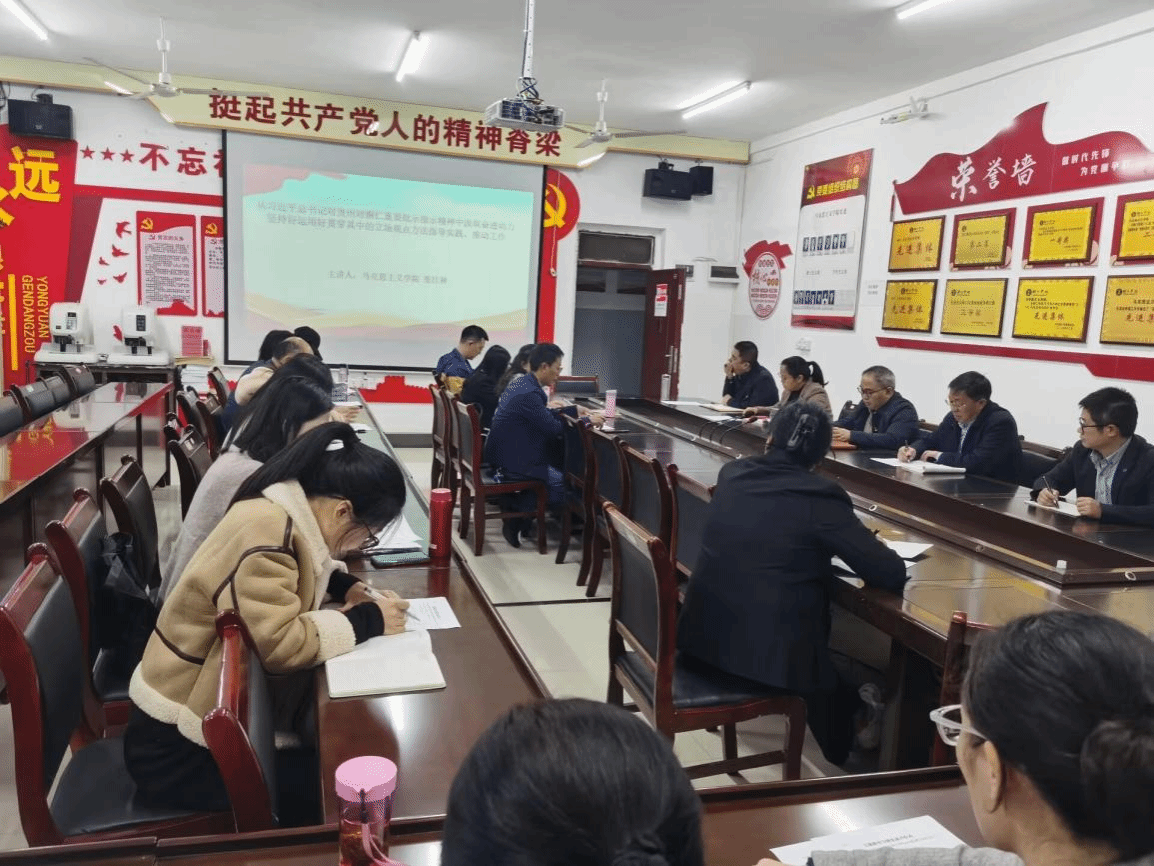 为深入推进学习贯彻习近平新时代中国特色社会主义思想主题教育走深走实,不断增强对党的创新理论的政治认同、思想认同、情感认同。11月10日下午,院党委书记张江林以《从习近平总书记视察贵州重要讲话精神和对贵州对铜仁工作重要批示指示精神中汲取奋进动力,坚持好运用好贯穿其中的立场观点方法,武装头脑、指导实践、推动工作》为题,结合自身学习党的创新理论的思考体会和实际工作,在马克思主义学院会议室为学院党委班子成员,各科室负责人,全体党员讲授了一堂主题教育专题党课。院党委副书记李兢主持专题党课。