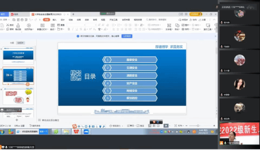 受当前疫情影响,入学教育采用腾讯会议的方式进行。入学教育课堂上,老师们分别从爱国主义教育、校史院史教育、优秀校友专题报告、常态化疫情防控、安全教育、专业认知教育、职业规划生涯、民族团结教育等专题向2022级新同学作了详细介绍和讲解,同时也对同学们提出了相关建议和要求:一要爱祖国,爱生活;二要学会做人、做事,学会沟通交流,与人为善,和谐相处;三要树立目标,做好学业和人生发展规划;四要热爱思政专业,加强专业知识的学习,不断提高知识和道德素养;五要脚踏实地,砥砺前行,成为新时代有理想、有本领、有担当的青年。
