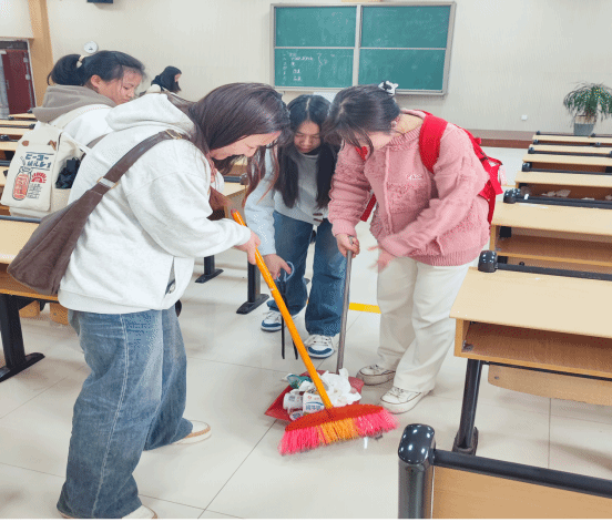活动伊始,同学们在依仁楼A205教室一同观看了雷锋同志生前事迹的相关视频,视频中的感动事迹及其雷锋同志的伟大精神对同学们产生了深刻影响,大家纷纷表示要进一步传承雷锋精神并将其融入自己成长的社会实践中去。接着,活动负责人将同学们分成三组,带领他们在校园内进行“学习雷锋,从身边小事做起”的美化校园环境整治活动。同学们拿着劳动工具打扫整理了依仁楼A201、205教室,认真仔细地将博思楼1到3楼空闲教室里的垃圾都清理干净。通过大家的辛苦付出,各个教室焕然一新。整个过程中,同学们干劲十足,不怕脏、 不喊累,不仅凝聚了集体力量,还将践行雷锋精神和实际行动相结合,展现了马院学子的风采。最后,全体同学集中于学院门口合影留念。