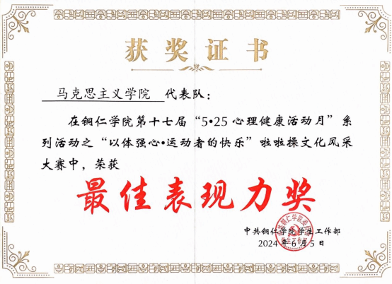 我院啦啦操队由一群热爱运动、充满活力的同学组成。比赛前期,我院啦啦操队员进行了紧张而有序的学习与准备。队员们利用课余时间积极投入训练,互相鼓励、互相支持。在此过程中,队员们不仅注重动作的规范和准确,还力求在表演中展现出青春活力和积极向上的精神风貌。他们反复练习每一个动作,不断调整队形和节奏,力求在比赛中呈现出最佳的状态。比赛当天,他们以整齐划一的动作、激昂热情的表演,充分展现了我院学子积极进取的精神风貌。他们的表演不仅赢得了评委和观众的一致好评,更体现了他们对青春的热情和对生活的热爱。经过激烈的角逐,我院啦啦操队最终荣获了二等奖以及最佳表现力奖。这一成绩的取得,离不开学院领导的高度重视和大力支持,也离不开同学们的辛勤付出和共同努力。