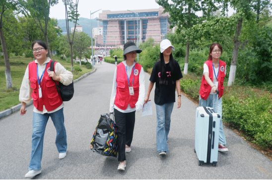清晨,我院在多个地方设立了醒目的迎新指示牌和热情的接待点。志愿者们早早地来到现场,他们身穿统一红色服装,佩戴工作牌,面带微笑,为新生们提供指引和帮助。无论是报到流程、宿舍安排还是校园导航,志愿者们都耐心解答,确保新生们能够顺利入学。报到现场,各项流程有条不紊地进行着。工作人员分工明确,一步步引导新生快速、顺利地完成报到手续。面对新生们提出的各种问题与疑惑,学姐学长们总是耐心细致地解答,用实际行动诠释着“以心换新”的迎新理念。在此期间,学校领导也对此次迎新工作给予了高度重视,学校党委书记朱克乾、校长石维、副校长罗静等领导来到我院报到点了解迎新工作开展情况,慰问关怀坚守一线的工作人员和学生志愿者。不仅确保了报到工作的顺利进行,还展现了高度的责任心与专业素养,对迎新工作的有序开展给予了充分肯定。不仅如此,我院党委书记张江林、党委副书记李兢等领导也多次到迎新点关心和看望新生相关情况,与新生家长沟通交流,充分体现了我院领导对学生的关心,更传递出了学院对新生们给予的厚望和深深祝福。