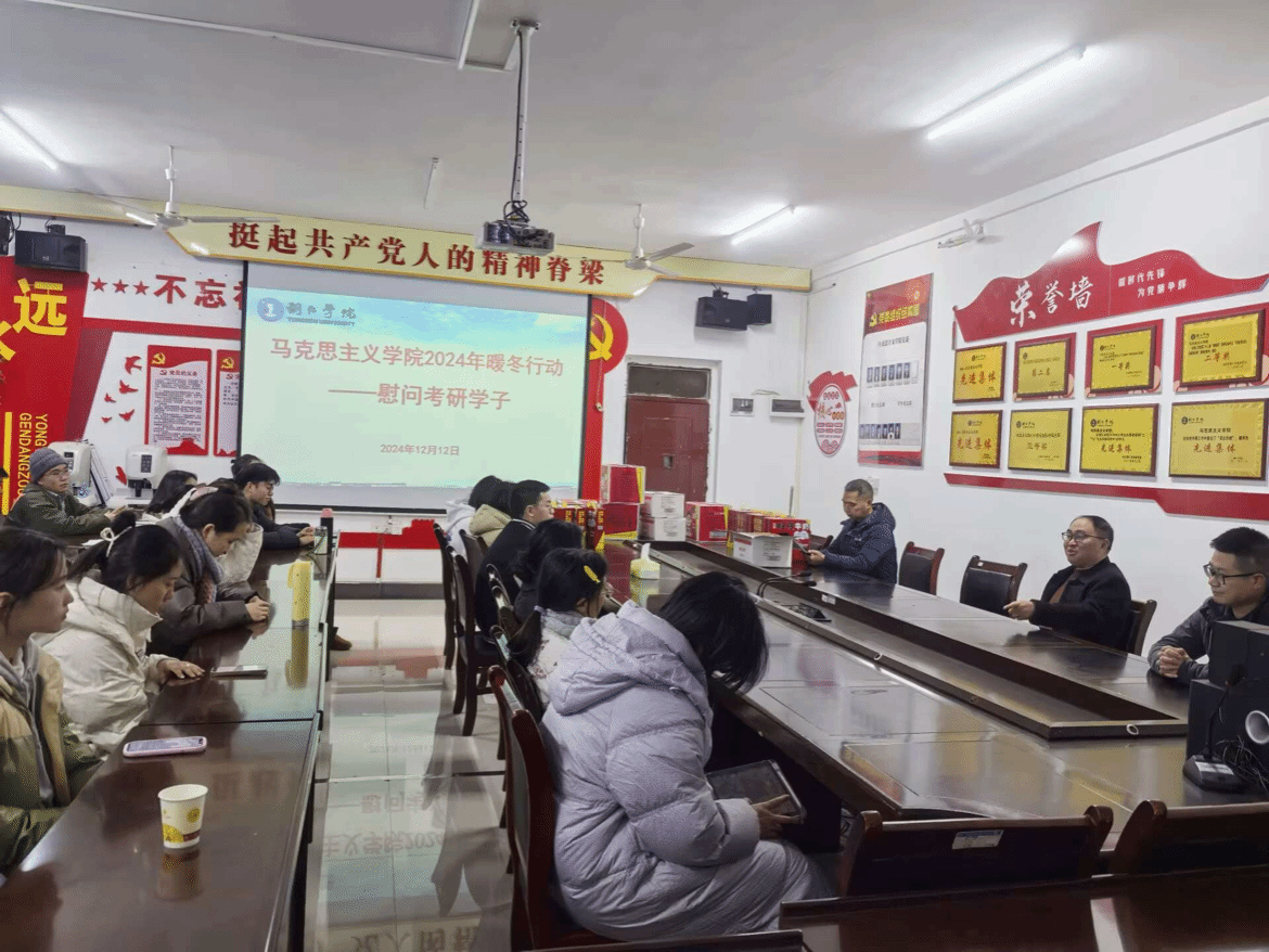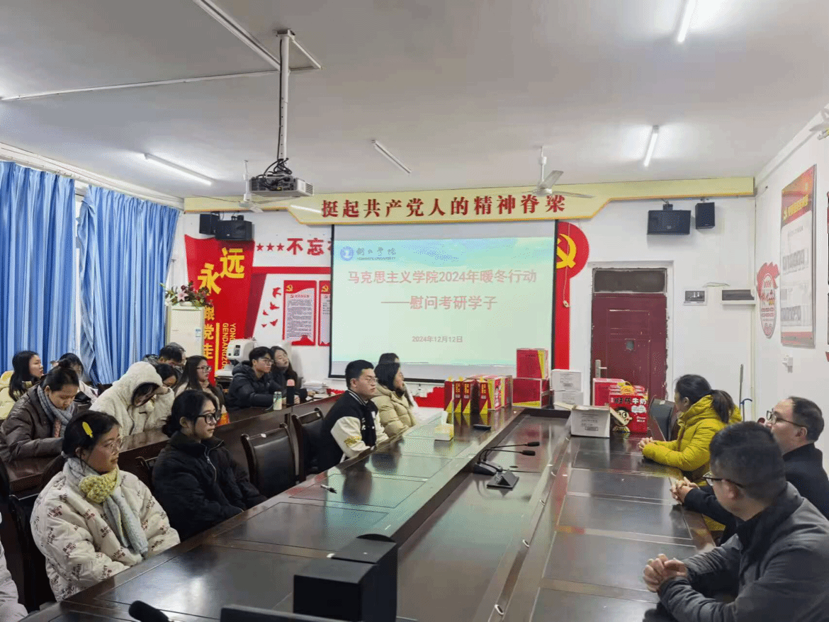 为了鼓舞考研学子的士气,传递学院的关怀与温暖。12月12日,我院在依仁楼A二楼会议室,举办了一场温馨的考研慰问活动。此次活动由我院党委副书记李兢主持,我院党委书记张江林,副院长赖全、张新昌,21级班主任田建龙老师共同为我院全体考研学子送上祝福。