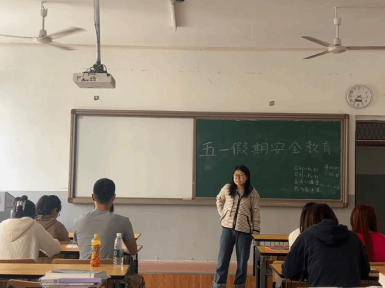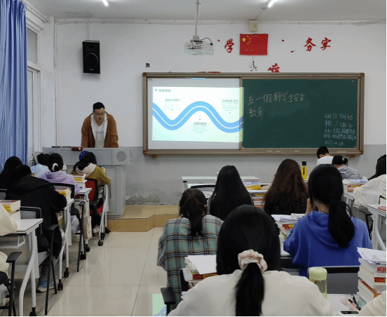 班会上,各班主讲人围绕交通安全、消防安全、防溺水安全、网络安全及人身财产安全等多个关键领域,展开全面细致的讲解。在交通安全方面,主讲人通过播放交通事故视频,剖析事故成因,提醒同学们五一出行务必遵守交通规则,不闯红灯、不逆行、不酒驾,选择正规交通工具,系好安全带、戴好头盔,将“安全第一”理念牢记心间。随后,谈及消防安全,主讲人强调假期用火、用电、用气安全要点,讲解火灾预防与逃生技巧。特别提醒在宿舍的同学,严禁使用大功率违规电器,离开宿舍时务必切断电源,防止火灾事故发生。随着气温升高,防溺水安全成为班会重点。各班讲解了溺水事故的案例,警示同学们远离危险水域,不私自下水游泳,不到无安全设施、无救援人员的水域嬉戏;若遇他人溺水,要保持冷静,及时呼救,切勿盲目下水施救。此外,还针对假期网络诈骗高发态势,讲解常见诈骗手段与防范方法,提醒同学们保护个人信息,不轻易点击陌生链接、不随意透露验证码,避免陷入网络诈骗陷阱。
