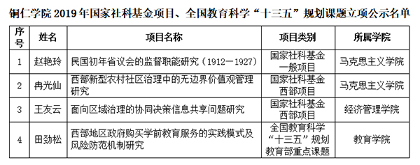 据悉,获立项的国家社会科学基金年度项目有我院教授冉光仙老师的西部项目《西部新型农村社区治理中的无边界价值观管理研究》,博士赵艳玲老师的一般项目《民国初年省议会的监督职能研究(1912—1927)》。