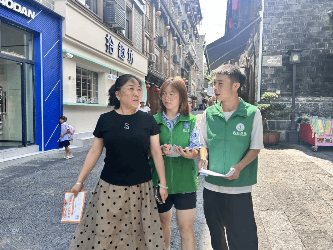 随后,宣讲团成员在古城街头进行问卷调查,虽然经常遭到拒绝,但在多次尝试中也有所收获。宣讲团成员通过调查了解到,当地25岁以下人群对党的二十大精神和黔东红色文化较为了解,并表示愿意主动去了解和宣传,但25岁以上人群大多为本地居民,只对黔东红色文化有所了解,对党的创新理论了解较少。此外,宣讲团成员还邀请答卷人对如何更好地宣传党的二十大精神和黔东红色革命文化提出自己的建议。此次采访,不仅收集了大量珍贵的红色文化资源素材和群众建议,还促进了党的创新理论传播。