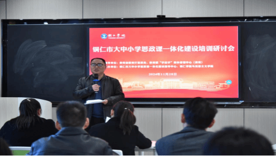 为深入贯彻党的二十届三中全会精神及全省教育大会精神,统筹推进大中小学思政课一体化建设改革创新。2024年11月28日,铜仁市大中小学思政课一体化建设培训研讨会在beat365英国官方网站召开。会议由beat365英国官方网站马克思主义学院党委书记张江林主持,铜仁市大中小学思政课一体化建设各学段牵头单位及思政课负责人,铜仁市大中小学思政课一体化建设专家指导委员会成员参加本次会议。