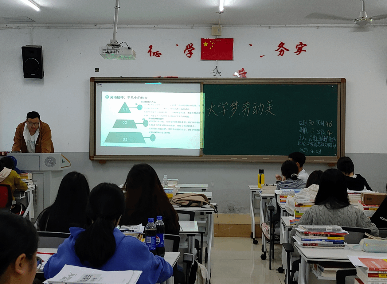 班会伊始,主讲人强调,梦想是人生重要的目标指引,而劳动则是实现梦想的基石。会上,主讲人分享身边优秀校友的故事,阐述了大学生树立梦想对于个人成长的重要性,以及劳动在追求梦想过程中所发挥的关键作用,引发了同学们的强烈共鸣。随后,互动环节中多位同学结合自身生活实际,讲述劳动带来的收获与感悟,积极分享了自己心中的大学梦和为实现梦想将付出的劳动计划。为了让同学们更直观地感受劳动之美,班会还组织观看了劳动模范的事迹视频。视频中劳动者们在各自岗位上辛勤付出、追求卓越的精神,深深打动了每一位同学。观看结束后,同学们纷纷表示,要以这些劳动模范为榜样,在日常学习生活中积极劳动,锤炼自身品质。