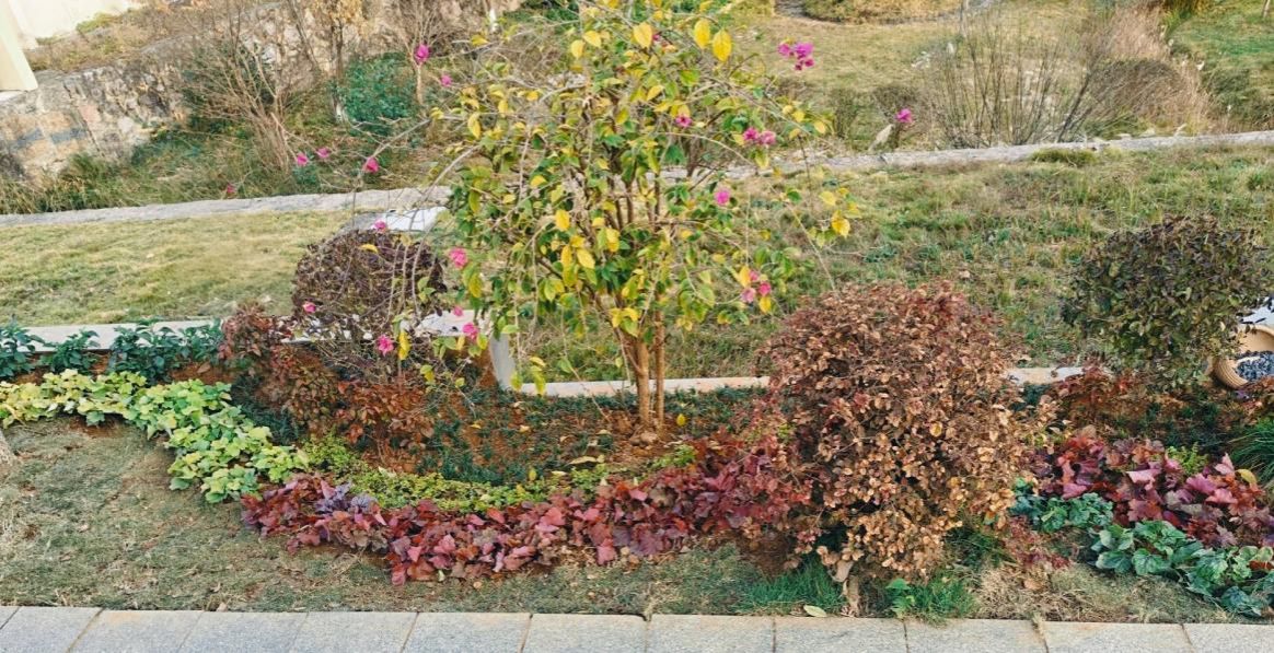 课程感悟:这次花境实践让我们真切摸到了“自然设计”的脉搏——从选苗时纠结矾根的色彩适配度,到现场调整树木的种植角度,原本图纸上的“色彩织梦”,落地时要兼顾植物的生长习性与空间节奏。组员们蹲在花境边比对每丛矾根的色调,围着树木调整支撑角度的样子,成了最生动的“实践课”。我们终于懂了:好的花境不是“摆”出来的,是让植物的色彩与姿态自然“长”成想要的氛围。感谢这次从图纸到土地的落地,让我们学会用植物的语言讲好设计的故事。