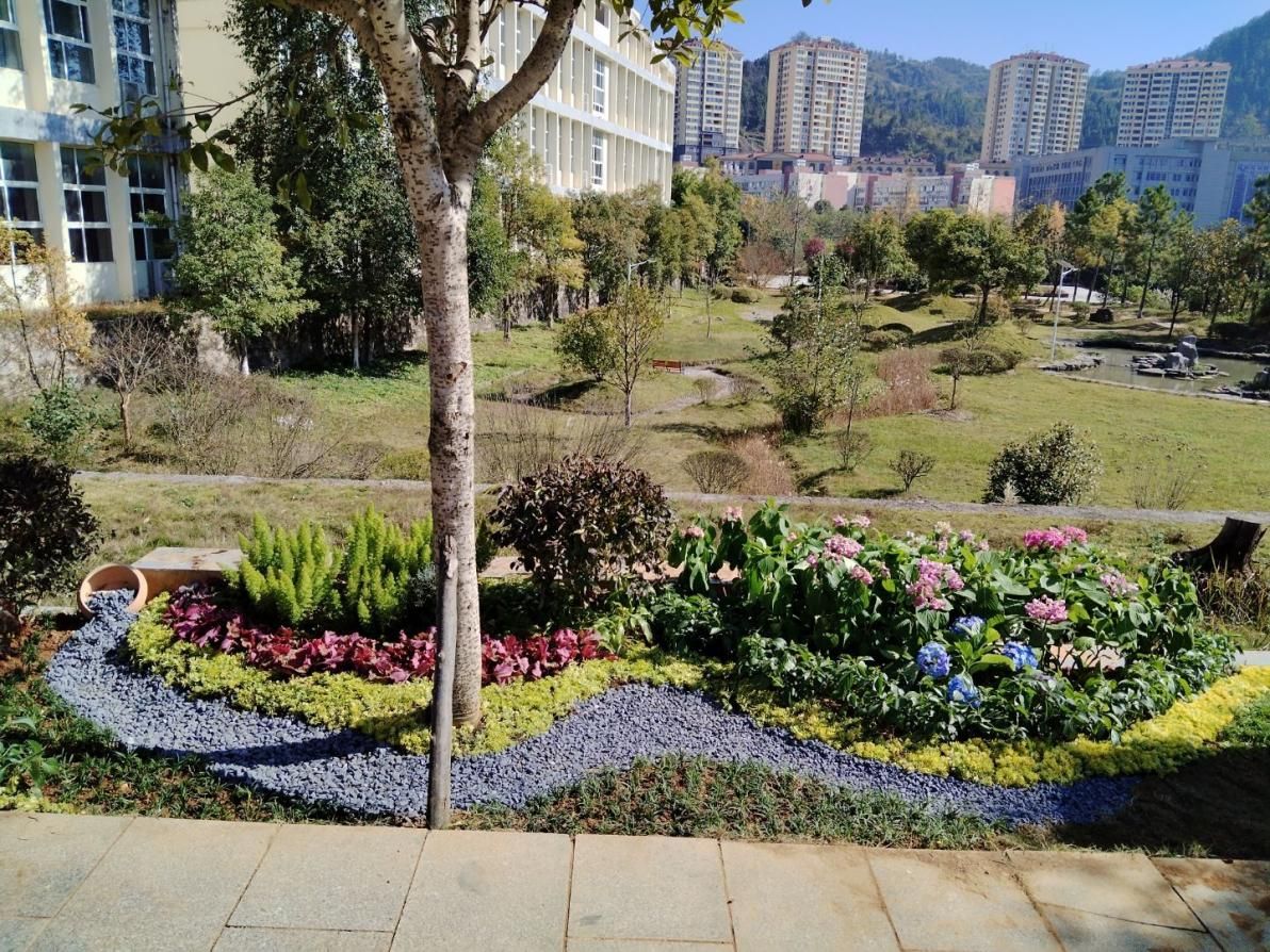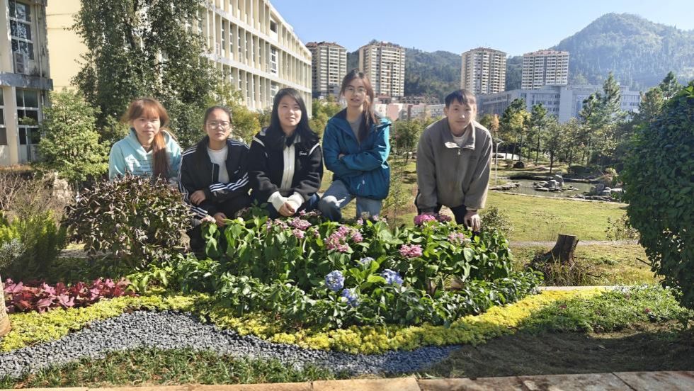此次花境设计建造,是课程教学的一次创新探索。课程通过户外实地调研、设计方案、施工落地等环节,引导学生直面真实场地与植物特性,在设计图纸与建成场景之间构建实践桥梁,全方位提升学生的设计思维与实践能力。项目以校园主干道一侧绿带为基址,学生以小组形式协同合作,打造出以多年生宿根植物为主,搭配灌木、少量一二年生花卉及园林小品的景观群落,兼具专业高度与观赏价值。活动得到了农林工程与规划学院、后勤处、教务处及铜仁梵花商贸有限公司等单位的大力支持,为实践教学的顺利开展提供了坚实保障。