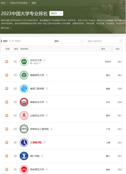 6月15日,高等教育专业评价机构—上海软科教育信息咨询有限公司发布2023年中国大学专业排名,beat365园林专业在上榜的80所院校中排名46,得分23.3分,与广西大学、沈阳农业大学、中国农业大学等均属B+层次。此次排名是按照学校条件、学科支撑、专业生源、专业就业、专业条件5个指标类别,共25项测量指标来检验专业的办学水平。