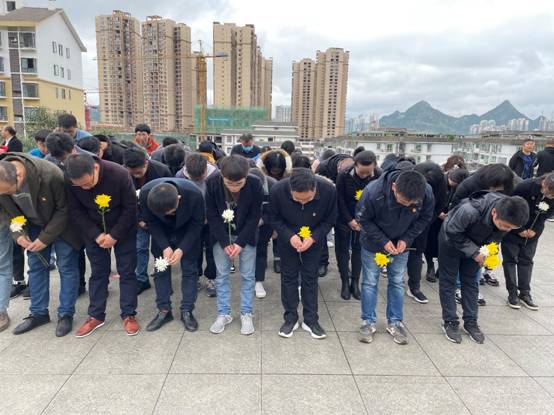 全体师生向着纪念碑三鞠躬告慰革命先烈英魂