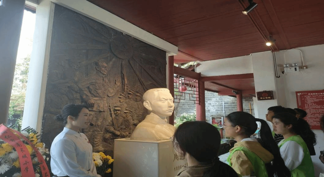 活动伊始,工作人员以及志愿者做好一切准备工作之后,在解说员的带领下进入周逸群故居进行参观。首先我院志愿者在周逸群故居进行献花、祭拜。在参观的过程中,怀着敬畏、沉重的心情认真聆听解说员讲解周逸群的故事,每走一步仿佛置身于那个战火年代,看到革命先辈在前线捍卫国家尊严的伟大形象。随后,解说员带领我院青年志愿者参观周逸群在居住地的日常生活,并对其进行了详细的解说。