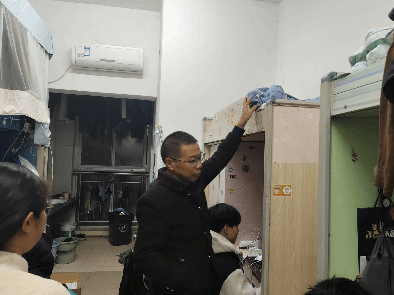 为深入了解学生冬季过冬情况,11月27日晚上21:00,我院党委书记李建新、院长米小其、党委副书记蒋旭军、副院长赵成刚、副院长张俊波分别带领全体辅导员(班主任)一行深入学生寝室开展“情谊暖寒冬,冬季送温暖”走访慰问活动。在走访慰问中,主要详细了解学生学习、生活、寒假返乡等情况,对学生存在困难及时给予关心和解决,嘱咐大家要提升安全意识,重视个人防护,加强体育锻炼,保持良好的生活习惯,以饱满的热情迎接期末考试,表达了学院全体教师对学生的亲切关怀。