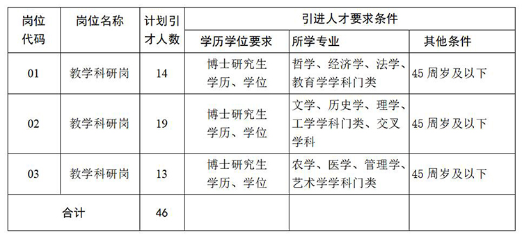 5.第五类人才:具有博士研究生学历学位,有很好的发展潜力,能胜任教学科研工作,能为学科建设做出较大贡献。
