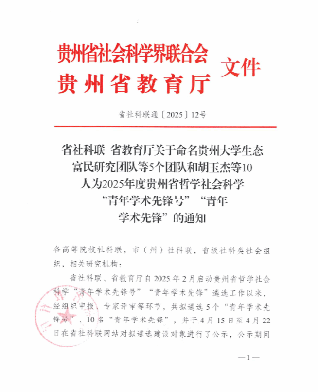 “青年学术先锋号”是贵州省为推进哲学社会科学“两工程一体系”建设的重要举措,由省社科联、省教育厅联合组织遴选,实行三年动态管理机制,每个周期末需接受严格评估。此次评选通过多轮竞争性评审,凸显入选团队的综合实力,充分彰显了其在区域文化研究领域的学术影响力。