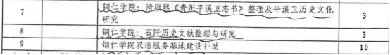 近日,贵州省民族宗教事务委员会下达了2021年省级民族工作项目经费。我院张建刚副教授申报的《松桃苗汉双语教师培训》和刘太胜副教授申报的《铜仁市基层干部普通话培训》各获5万元项目经费;杨春君副教授申报的《石阡历史文献整理与研究》,郭征帆副教授和市管专家汪兴联合申报的《清康熙< 平溪卫志书>整理及平溪卫历史文化研究》各获3万元项目经费。日前,上述经费已全部到账。
