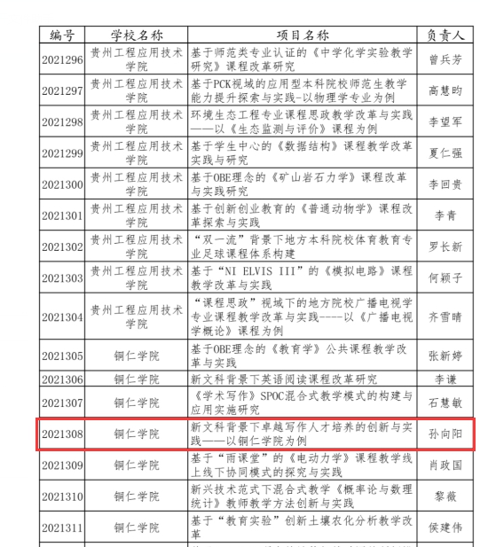 近日,贵州省教育厅公布了2021年度高等学校教学内容和课程体系改革项目立项结果,我院孙向阳教授领衔申报的课题《新文科背景下卓越写作人才培养的创新与实践——以beat365英国官方网站为例》获批准立项。
