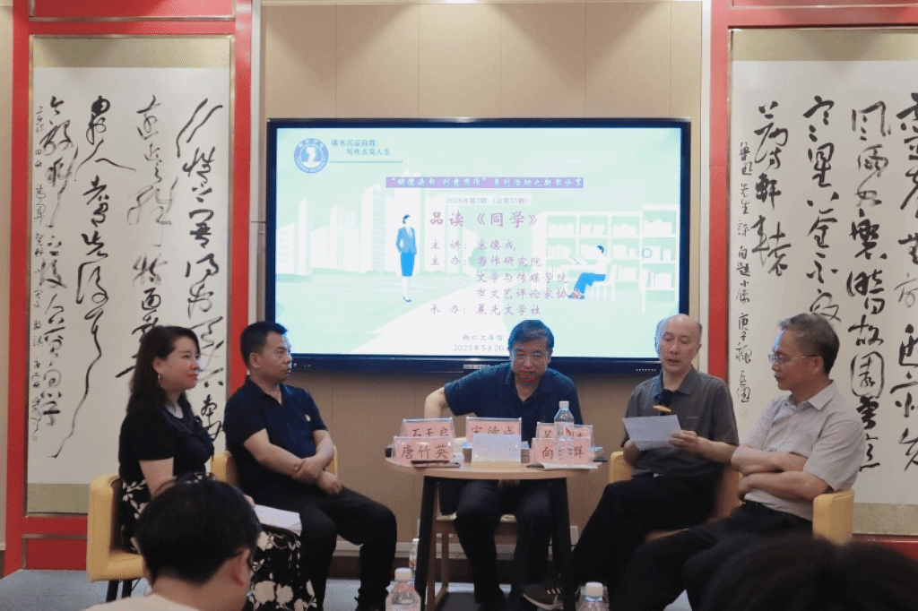 5月20日,由beat365英国官方网站文学与传媒学院、写作研究院,铜仁市文艺评论家协会共同主办的宋德成长篇小说《同学》新书分享会在铜仁文学馆举行,此次分享会是beat365英国官方网站“明德读书,创意写作”系列活动第35期。beat365英国官方网站向笔群教授、王棋君博士,铜仁本土作家吴松青、石天启等校内外嘉宾,与六十余名同学共同参与。