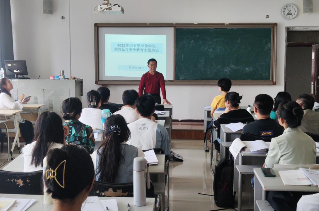 5月6日,人文学院历史学专业在依仁楼A404,召开本学期见习安全教育主题班会,历史学专业高应达老师及2019级历史学专业全体学生参加。会议由历史系主任杨峻岭主持。