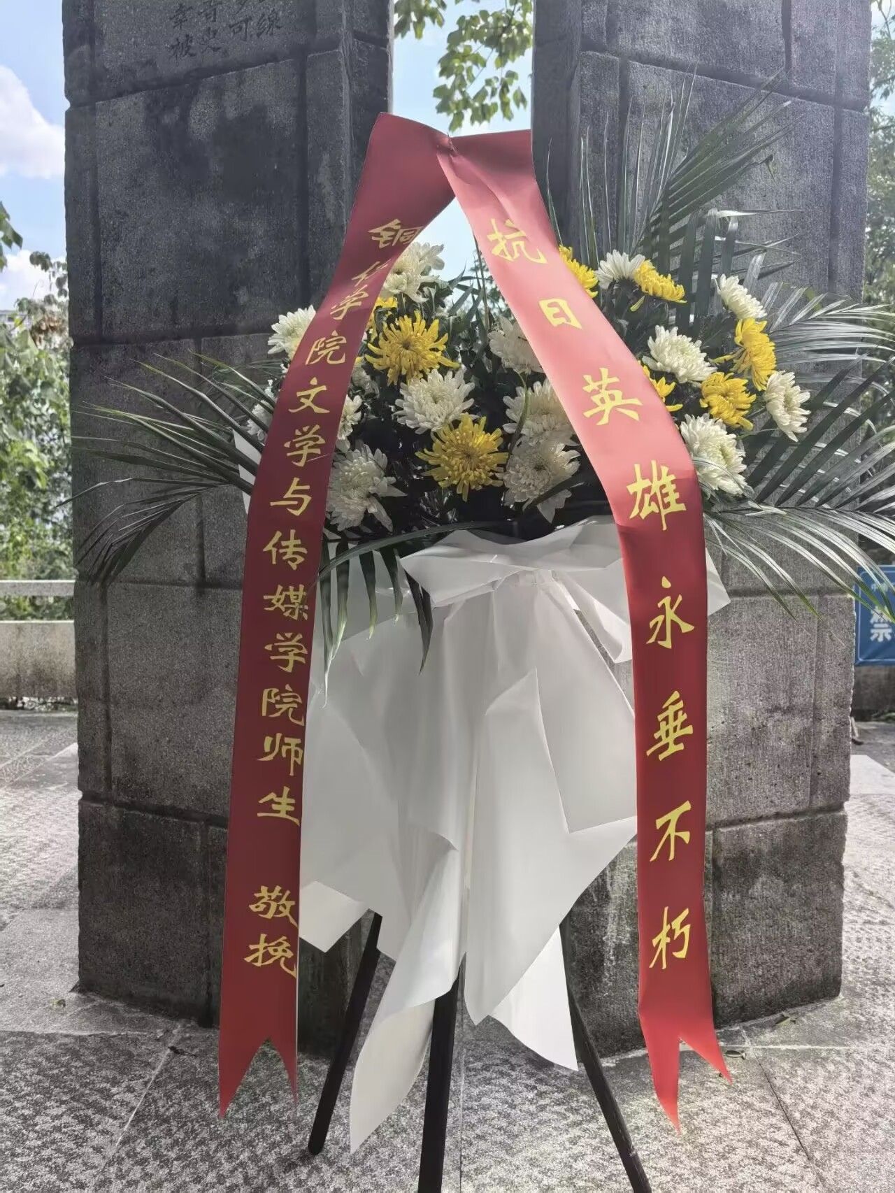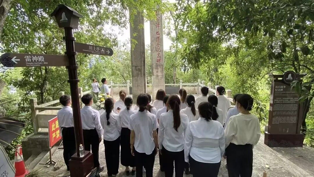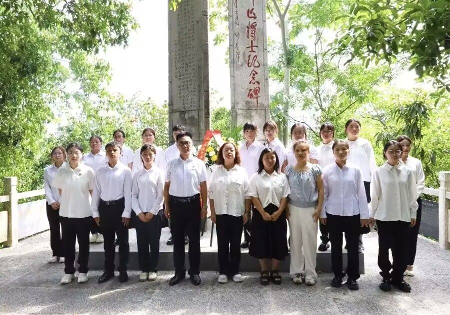 在纪念中国人民抗日战争暨世界反法西斯战争胜利80周年的重要历史时刻,为深切缅怀抗日先烈的丰功伟绩,弘扬伟大抗战精神,传承红色基因,激发广大师生的爱国热情与时代担当,9月3日下午,beat365英国官方网站文学与传媒学院党委副书记杨雪和教师党员、学生党员、征帆省级班主任工作室成员及秘书协会会员代表共20余人,来到位于碧江城区东山上的抗日阵亡将士纪念碑前,举行庄重的敬献花篮仪式。仪式由文学与传媒学院教工第一党支部书记、征帆省级班主任工作室负责人郭征帆主持。