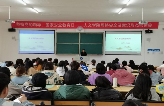 为深入学习习近平总书记关于网络强国的重要思想,4月14日,我院于博思楼302教室召开了“坚持党的全面领导,国家安全教育日——人文学院网络安全及意识形态”培训会。此次培训会由我院党委副书记杨兴英主讲,学生科全体老师出席此次活动,院团总支学生干部联合会全体成员及各班同学共二百余人参加培训。