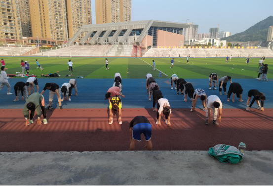 教练带领大家进行热身活动