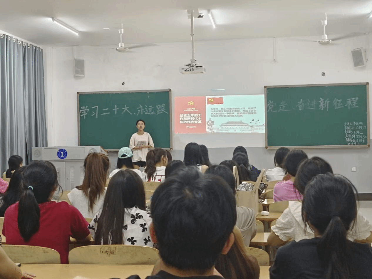 各班围绕主题开展了形式多样的学习活动,如2022级汉语言文学专业(2)班,对党的二十大召开的重要意义、深刻领会党的二十大报告的科学内涵、全面贯彻党的二十大精神等问题,采用问答方式开展,让全班同学积极参与其中。2022级网络与新媒体专业,采用主题宣讲的方式,由宣讲员为同学们宣讲了二十大精神。
