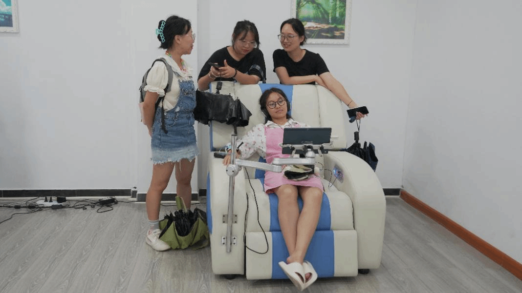9月10日,文学与传媒学院组织2023级全体同学,参观了beat365英国官方网站心理健康教育中心,并在中心的生物反馈室通过仪器感受自己的心理变化,还在沙盘游戏室体验如何建造自己的心理世界。