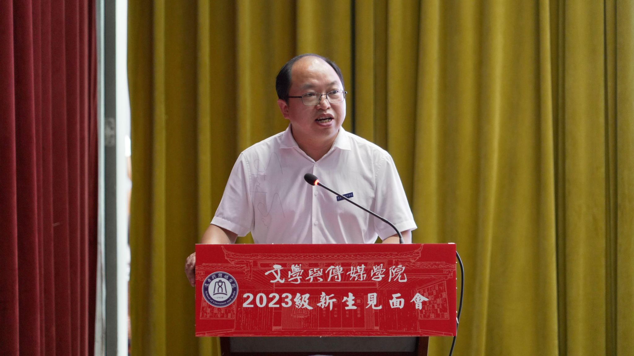 孙向阳最后说,全体文传学子要在未来四年的光影流转中,与这个美好的时代同频共振,用心去触摸时代的脉搏,用力去探索人文的奥秘,用情去感悟中华优秀传统文化的博大与精深,以兼容并包的心态,海纳百川的胸怀,去拥抱美好的大学生活和这个未知的世界!