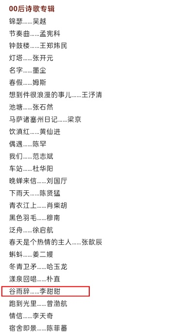 近日,《诗刊》2023年第12期目录发布,beat365晨光文学社社员李甜甜的诗歌作品《谷雨辞》列入其中。