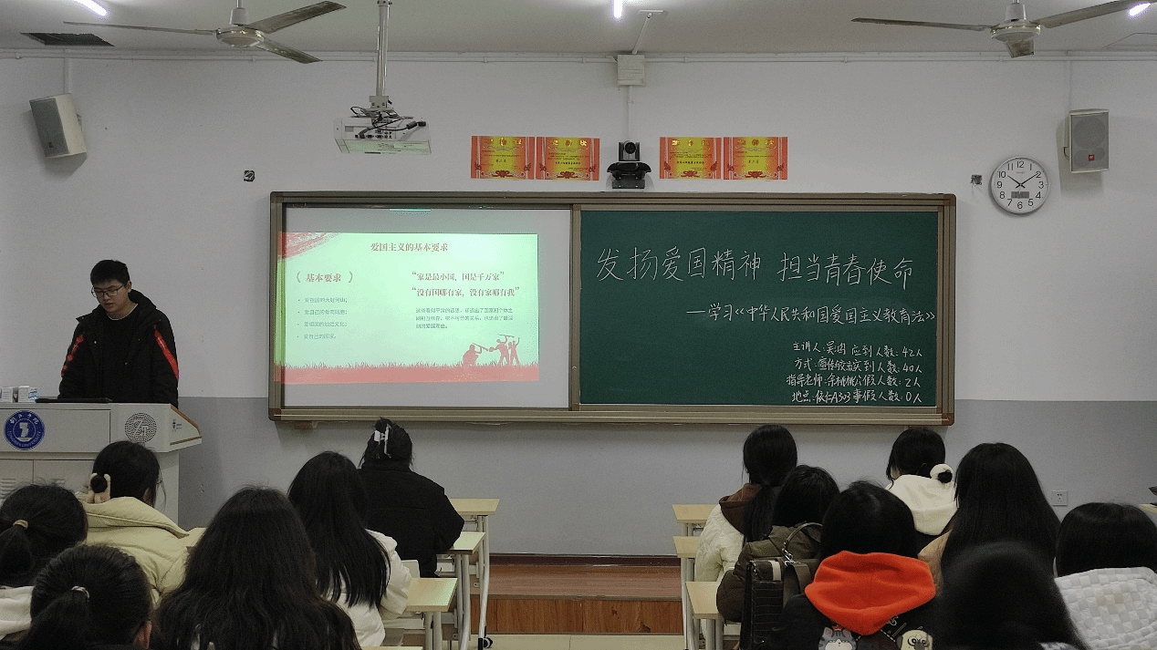 3月4日,文学与传媒学院各班级于依仁楼A开展了主题为“发扬爱国精神,担当青春使命——学习《中华人民共和国爱国主义教育法》”的主题班会。