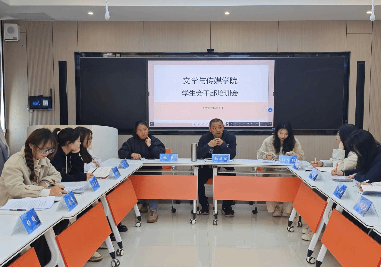 3月11日下午,文学与传媒学院在依仁楼A408举行学生会干部培训会,参与此次会议的领导有文学与传媒学院副院长张建刚,学生科负责人杨蓉,团总支负责人杨梦阳以及学生会全体干部。